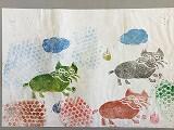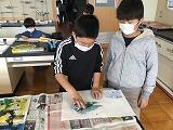 先週から今週にかけて版画を刷りました。子供たちは、1つの版からいくつもの動きが生まれることや、色を重ねて刷ることで想像していた色とは違う色に変化する楽しさを感じながら、作品を仕上げていました。家から持ってきた材料を使い、情景にあう模様を考えながら、楽しんで取り組む姿が多く見られました。活動の様子や仕上げた作品をご覧下さい。
