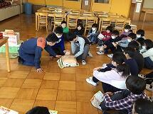 初めは、胸骨圧迫に苦戦している児童が目立ちましたがだんだんコツを掴んできた様子でした。