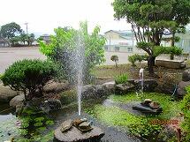 梅雨時の空に、噴水が気持ちよく飛び出していました。