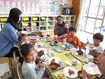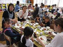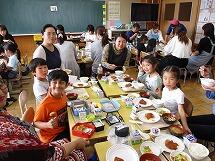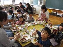 給食を食べた保護者のアンケート結果では、「味付けについて」・・・ ちょうど良い12名・やや薄め4名、「量について」・・・ ちょうど良い13名、やや少ない1名、やや多い2名 の結果でした。(16名中)