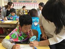 今日は、1年生の親子活動でした。歯科衛生士さんに正しい歯の磨き方を教えていただき、カラーテスターを使って、どこが赤くなっているのかを親子で確認し合いました。「歯の隙間が赤いね。」「ここも赤いね。」と言いながら、真剣に歯を見ていた1年生でした。それから、学校医の古澤先生からも歯についての講話をしていただきました。これからも、しっかりと歯を磨いて、健康な歯にしていきたいと思います。その後は、親子で給食を食べました。笑顔いっぱいの1年生でした。