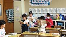 12日(水)、国語の時間に詩を音読する練習をしました。はじめに、上手な音読とはどういう音読かを考え、声の強弱をつけたり、速さを変えたりと工夫することで、その詩の様子が伝わるように読むことが大切であると確認。それから、グループ毎にどんな工夫をするとよいかを話し合い、練習、発表を行いました。それぞれのグループで感じたことを表現するため、様々な工夫が見られ、楽しいミニ発表会になりました