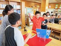 6月19日(水)、理科「風やゴムのはたらき」で風が物を動かす力について調べました。風をうけて走る車を使っての実験です。子どもたちは、グループで協力しながらどのくらい車が走ったかを調べました。ちょうど算数で“まきじゃく”について勉強したところだったので、まきじゃくの使い方の復習にもなり、学びの多い1時間となりました。