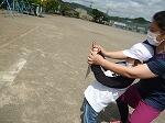 ワールドグループ(縦割り班)で,間隔をとって校庭で実施。高学年生から,手作りの金の王冠をかぶせてもらい,とっても嬉しそうな1年生でした。