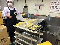 今日は、栃木市産のしいたけを使いました!とても大きな、おばけしいたけに調理員のみなさんも驚いていました。