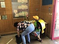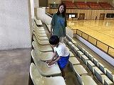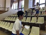 中学生はフロアーのモップ掛け、小学生は観客席の水拭きをしました。
