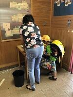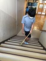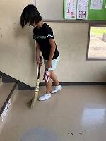 学期末の清掃で、子どもたちと一緒に床のごみを掃き、水拭きをしてきれいにして…