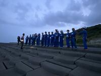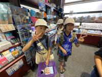 リーダーの先生にじゃんけんで負けてしまうと、新聞が小さくなっていきます。新聞の上に長く立っていられた人が勝ちです。