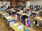体育館はとても暑いので、全校児童が集まることはせずに、各教室とランチルームをつないで、Zoomで行いました。