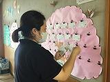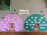 4,5月は桜の木が掲示されていましたが、児童から「新緑!! 緑の葉のしましょう!」という意見が出たので、緑の葉に変えてみました。