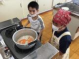 野菜を切ったり、ゆでたりしている様子ですキラキラねこの手の形を意識し、安全に気を付けて、調理できました。