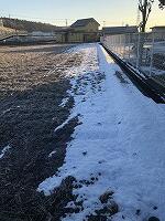 ↓↓今朝は、日が当たる場所はすっかり溶けてしまいましたが、日陰にはまだ積もったままですね。霜が降りて、朝日が当たってキラキラ輝いていて、とてもきれいでしたよキラキラ