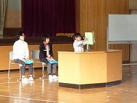 保健安全委員会の児童が、「インフルエンザに関するアンケート報告や学校での取り組み」を