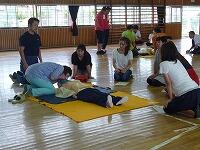 学校では毎年、万が一の事故にも対応できるよう、消防署の方にお越しいただいて救命救急講習を行っています。