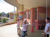 元気に遊び終わった子どもたちが嬉しそうに下を通っていく姿が見られます。