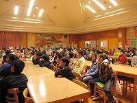 後半は、給食委員会の発表や豆つかみ大会などが行われました。