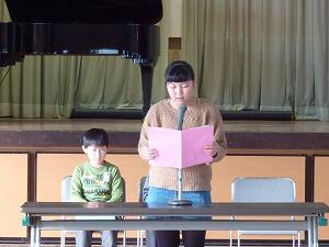 そして迎えた25日。第2学期終業式です。まず、3名の代表児童が「2学期を振り返って」の作文を発表しました。