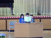 最後に2年生以上の上級生達から、校歌のプレゼントがありました。わからないことは何でもみんなやさしく教えてくれますから、早く学校に慣れて楽しく勉強や運動をしましょうね!!