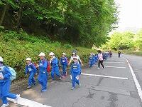 ↑ ワールドグループごとに高富士山のふもとを目指します。上級生が下級生に優しく声をかけ、励ます姿も見られました。高富士山のふもとでは、地域の方からお話をうかがいました