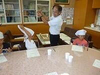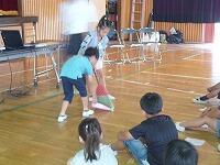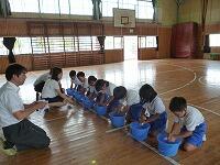 後半では「そうじ用具を正しく使おう」ということで、ほうきの持ち方、ちりとりでのゴミの集め方、ぞうきんの絞り方等正しい用具の使い方を実習を通して学びました。