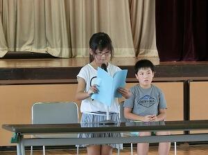 最後に、本年度の本校の目指す児童像「あいさつがしっかりできる子」「だれとでも仲良くし互いに認め合える子」「よく話を聞き自分の意見や考えが言える子」「めあてに向かって努力する子」をもとに、今学期の目標を立てるようお話がありました。