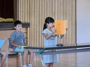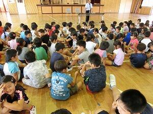 続いて、校長先生から夏休みの思い出をお互い話し合うようお話がありました。みんな楽しそうに思い出を伝え合っていました。