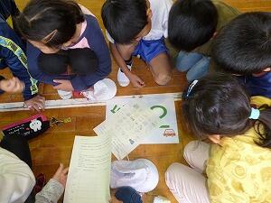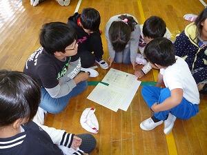 ↑最後に班で話し合ったことを発表しました。「家族の写真が必要」という発表では、「いざというとき、身元をはっきりさせるのに必要」と理由を述べていました。災害に遭ってどうするか、何が必要かを子どもたちは真剣に考えていました。