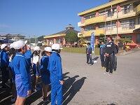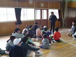 ↑校長先生がやり方を説明してくださっています。「実際災害に遭ったとき、どう考え行動するか」がポイントです。