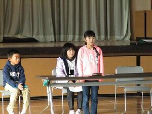 代表児童は、今学期を振り返る発表を堂々と行いました。