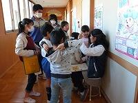 中学生が各グループのリーダーになって、校内のあちこちに用意された20のミッションをクリアしていくものです。全部は回れませんが、小学生と中学生が協力し合って、様々なゲームや、問題に挑戦していきました。