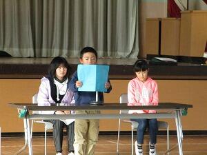 代表児童は、今学期を振り返る発表を堂々と行いました。
