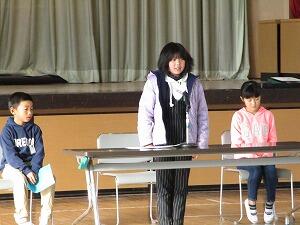 続いて、校長先生からは、「目指す児童像」の達成状況を振り返り3学期につなげること、冬休み中テレビやゲームばかりやるのではなく、自分を伸ばす休みにするよう、お話がありました。