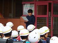 水曜日は一斉下校です。交通安全担当職員の指導の後、隔週で、「交通安全誓いのことば」と「いかのおすし」を、6年生のリードで全員で確認します。年間を通して実施しています。