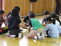 6月2日(金)の業間の時間に英語集会がありました。第一回目の英語集会のテーマは「世界の国々」。世界の国の言い方をみんなで確認した後、風船を使った3ヒントクイズで英語での国の名前に慣れ親しみました。1,2年生が風船を運び、3~6年生が風船を割って答えを導き出して・・・。ワールドグループで協力して楽しく活動を行う事が出来ました。
