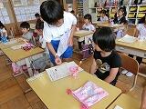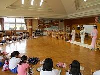 6年生の総合の時間で「着付け体験」を行いました。講師の先生を招いて、浴衣の着方、お辞儀や座り方のマナーについて学びました。一人一着浴衣を用意してくださり、浴衣のたたみ方、帯の結び方などを丁寧に教えていただきました。男の子も女の子も多くの子が初めての浴衣に喜んでいました。