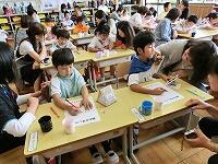 水墨画では、墨の濃さを変えて表現し、かぶ・富士山などを描きました。みんな真剣な表情ですね!いろんな技法があったのでびっくりでした。こちらも展示しておきますのでご覧ください。