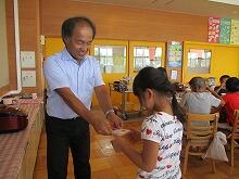 今年度のあいさつ運動では、あいさつポイントがたまると“あいさつ免許”が交付されることになり、学期末に42名が校長先生から免許証をうけとりました。今後、更によりよいあいさつができると『緑のシール→青いシール→ゴールドのシール』とレベルアップしていきます。