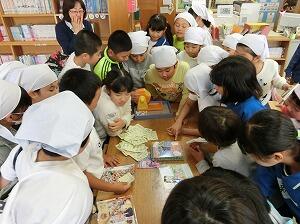昼休みにはガラポン抽選会がありました。コーナー別ポイントカードがいっぱいになった児童が参加できます。今回は特別な賞品があったので、みんな張り切って参加しました。