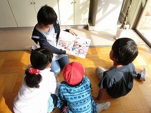 業間の時間には先生方による読み聞かせがありました。自分が聞きたいお話を選んでいった場所にいる先生は誰だったかな?みんな真剣に聞いていますね。