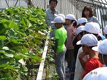 10月27日総合的な学習の時間に、3年生が近隣の40年続くいちご農家の方から、いちご栽培や経営等について、お話を伺いました。栃木県南部でいちごづくりが盛んな自然的な条件のこと、苗づくりのこと、スカイベリーを開発した理由のこと、連作のことなど、たくさん教えてくださいました。