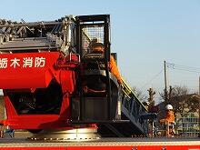 12月21日放課後、栃木市消防の最新鋭はしご車が本校に登場。3階ベランダにいる被災者の救助訓練です。最新鋭のはしご車は、はしごの先3メートルで角度がつけられるようです。