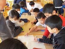 1月10日ロング昼休みに、ワールドグループ(異年齢集団)で、カルタ、だるま落とし、けん玉など、伝統的な遊びを行いました。活動の最後に、グループの人の良いところをカードに書いて気持ちを伝え合いました。