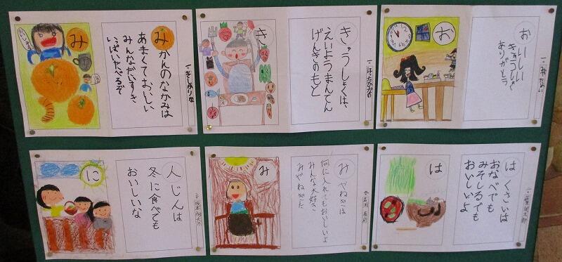 給食週間の取組として、子どもたちは毎年給食カルタを作成しています。