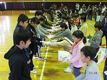 卒業生を送る会を行いました。5年生が企画運営を担当。いつものワールドグループ(異年齢集団)ごとに、5年生が考えた様々なイベントを回り、ポイントを集めました。6年生に歌と花のプレゼント、6年生からは歌と学年プレートをいただきました。