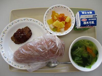 ☆(皆川中学校リクエストメニュー)揚げパン 牛乳 ハンバーグ 野菜スープ フルーツポンチ☆