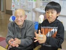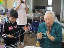 3月7日(水)5校時、近くの福寿園に、2年生全員で行ってきました。おじいちゃん・おばあちゃん達に喜んでもらえるよう、2年生なりに考えて、合唱・音読発表やあやとり・折り紙・お手玉の交流をしました。元気いっぱいの発表にお年寄り達は大喜び。たくさん拍手をもらいました。また、子ども達は折り紙やあやとりのやり方をやさしく教えたり、一緒にお手玉を楽しんだりしてとても楽しい時間を過ごすことができました。最後に大きなメダルのプレゼントをいただきました。また、行きたいですね!!