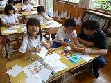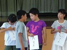 グループで一匹動物を決め、その動物ができること、できないことをヒントとしてみんなに出題し、動物の名前を当ててもらうクイズです。子どもたちは一生懸命ヒントを考え出したり、そのヒントから動物を見つけ出したりとクイズを楽しみながら、英語を学んでいました。