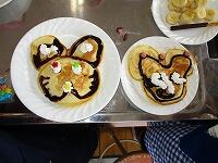 上にのせるトッピングは御家庭で持ってきてもらい、ミッキーの形やとち介の形、まるでケーキのようなパンケーキなど・・・親子で思い思いのパンケーキを作ることができました♪