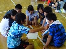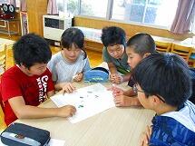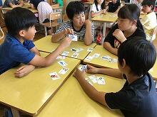 グループで一匹動物を決め、その動物ができること、できないことをヒントとしてみんなに出題し、動物の名前を当ててもらうクイズです。子どもたちは一生懸命ヒントを考え出したり、そのヒントから動物を見つけ出したりとクイズを楽しみながら、英語を学んでいました。