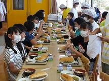 ランチルームでの、配膳から「いただきます」の時間帯の様子です。